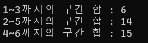 cout << "1~3까지의 구간 합 : " << sum[3] - sum[0] << "\n";