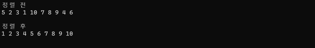 cout << "\n\n정렬 후" << "\n";