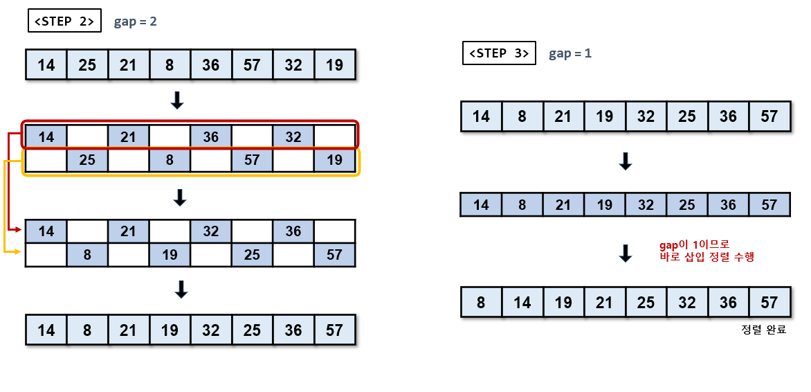 gap /= 2; //gap의 크기를 반으로 줄인 후 다시 반복 (gap이 1이 될 때까지)