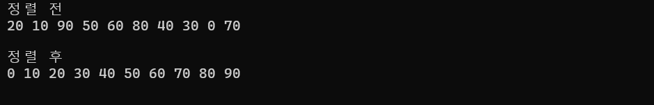 cout << "\n\n정렬 후" << "\n";