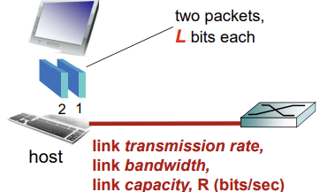 - arrival rate(링크에 도착하는 속도) > transmission rate(링크에서 나가는 속도) 이면 queueing delay 발생