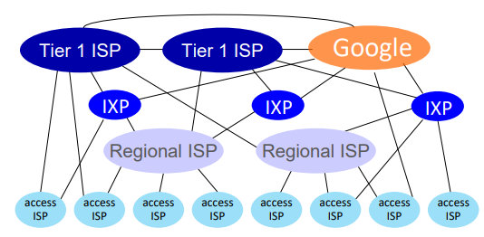 인터넷 구조는 여러개의 ISP를 거쳐 연결되는 multi-tier hierachy 구조이다.