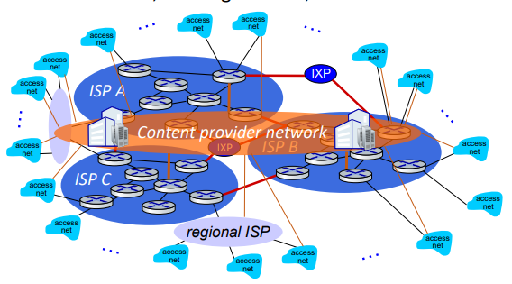 - But, CPN or CDN may be not a Tier-1 ISP! → Tier-1급 ISP가 될 수는 없음. (전세계의 사용자들에게 접근하기 위해서는 Tier-1급 ISP에 연결되어야 한다.)