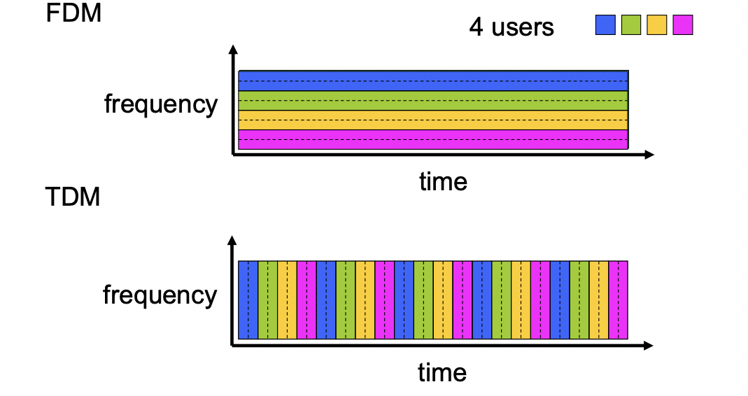 -link를 시간대별로 고정된 time slot으로 나눠서 사용 (packet switching과 유사)