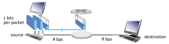 - arrival rate(링크에 도착하는 속도) > transmission rate(링크에서 나가는 속도) 이면 queueing delay 발생