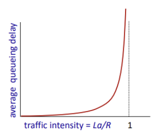 - As a value of TI gets closer to 1, queueing delay rapidly increases. (0.8을 넘어가면 exponential하게 확 늘어난다)