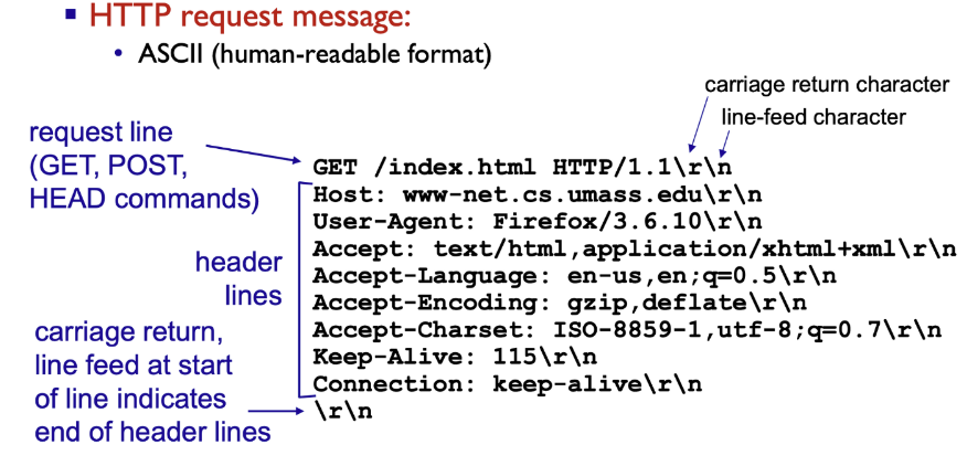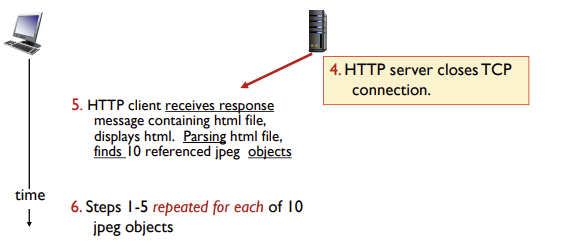 - server는 client로부터 TCP connection을 수락 - HTTP messages exchanges