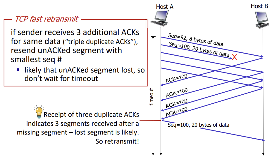 => 이 말은, 동일한 ACK이 여러번 전송되는 경우 어떠한 segment가 loss되었다고 판단할 수 있다는 뜻이다.