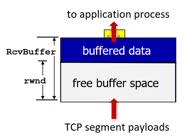 sender는 free buffer space의 크기(=rwnd)만큼 데이터를 추가로 전송이 가능한데,