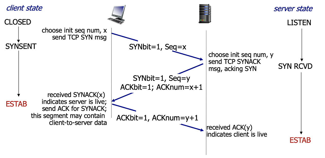 1. SYNbit=1, Seq=x, (ACKbit=0, ACKnum=쓰레기값)